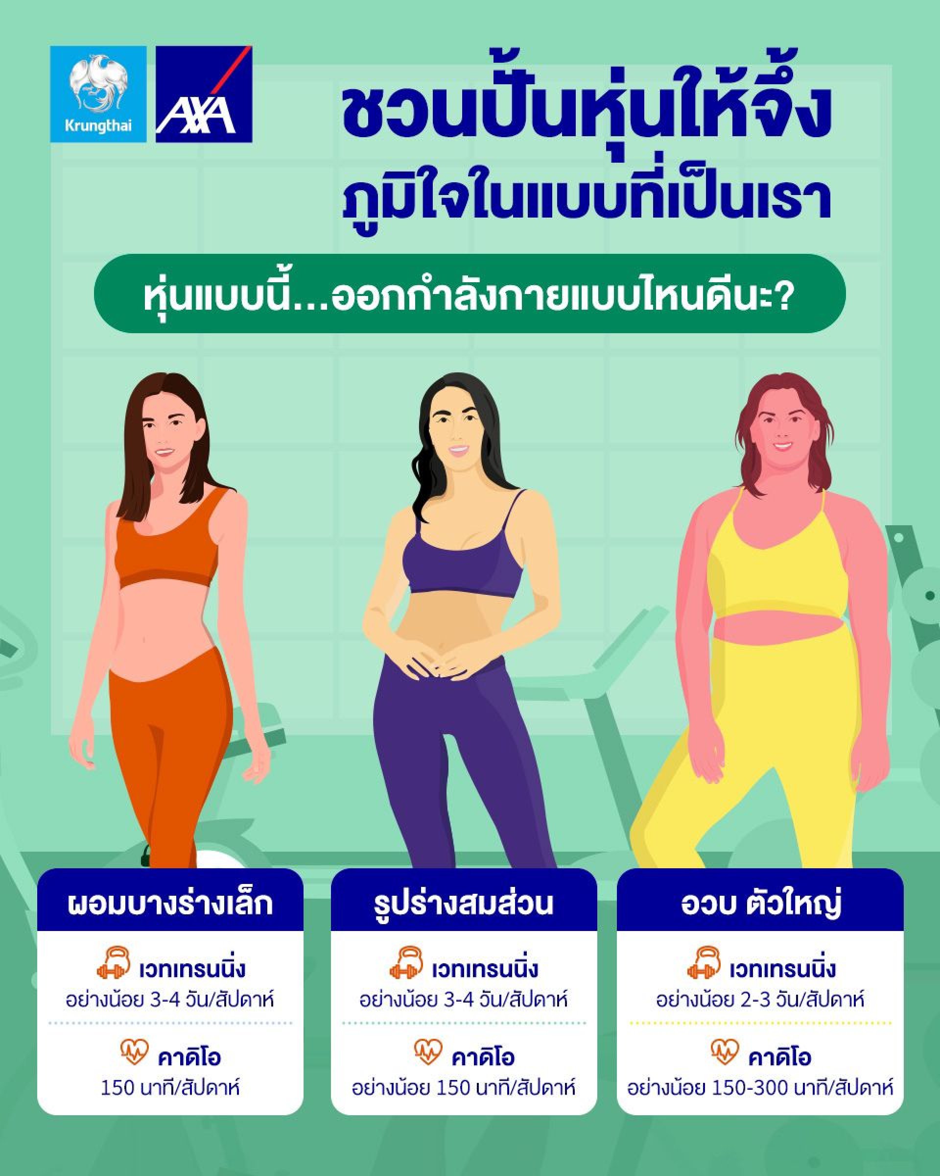 แต่เป็นการออกกำลังกายที่เหมาะกับร่างกายของเราเอง เพื่อเสริมความภาคภูมิใจในตัวเองต่างหาก ️️เช็กหุ่นที่ตรงกับเราตามนี้เลย