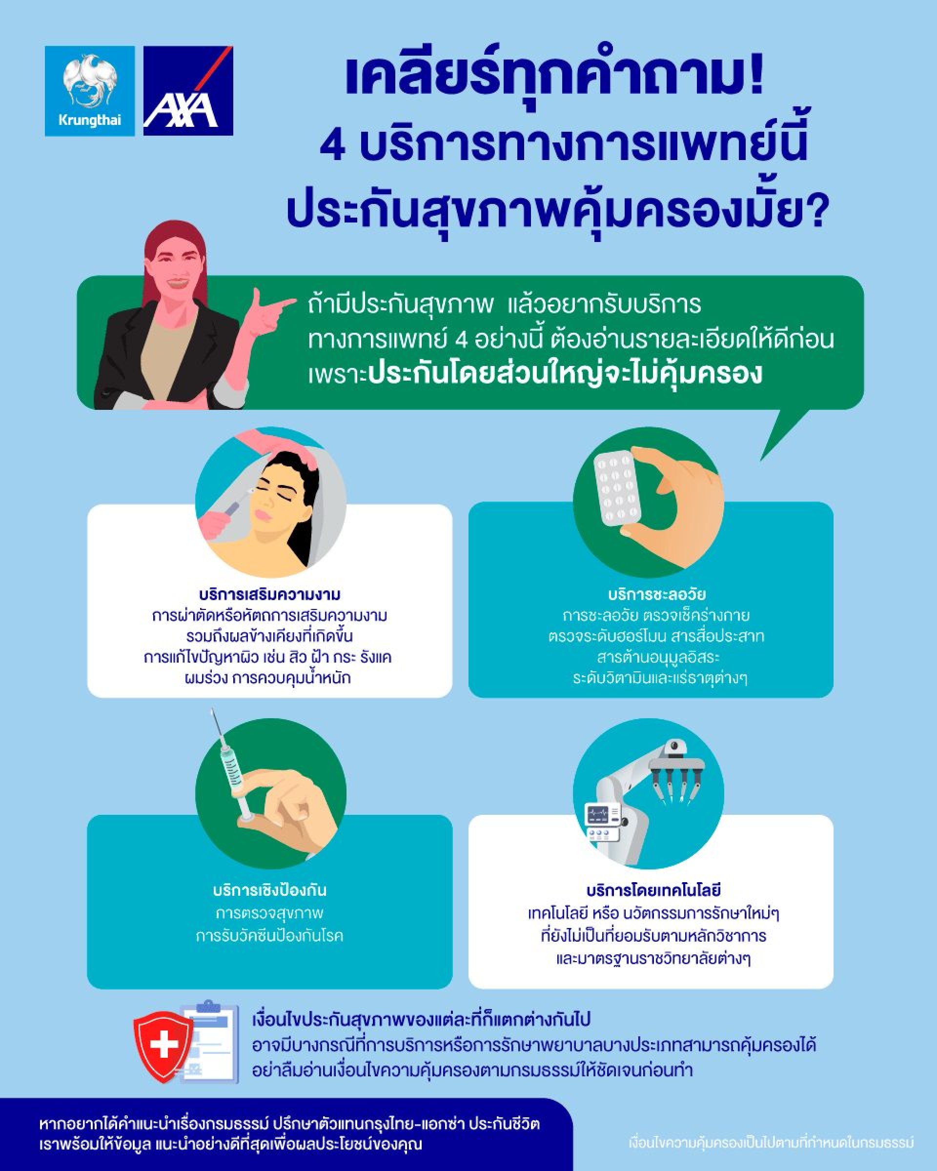 อยากไปทำศัลยกรรม ชะลอวัย หรือตรวจสุขภาพ แต่ไม่แน่ใจสิ่งเหล่านี้นับเป็นการรักษาพยาบาลมั้ย? เคลมประกันได้รึเปล่า? ถ้าคุณกำลังสงสัยแบบนี้ อย่าเพิ่งนัดพบแพทย์ มาอ่านคำตอบจาก กรุงไทย-แอกซ่า ประกันชีวิต กันก่อน!